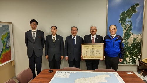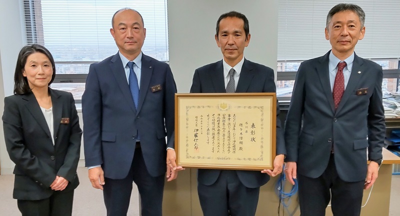 令和6年度「循環型社会形成推進功労者等環境大臣表彰」を当協会沢田隆専務理事(有限会社フゲシ環境サービス)が10月1日に開催された浄化槽大会に於いて受賞されました。12月4日に浦部会長・大西副会長と共に石川県 桜井土木部長及び橋本生活排水対策室長にご報告とお礼に伺いました。