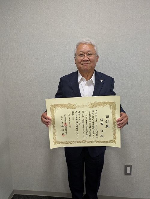 当協会の沢田隆専務理事(有限会社フゲシ環境サービス)に表彰状が授与されました。